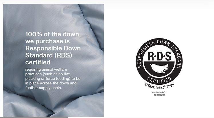 Our products use RDS certified down, ensuring animal welfare and sustainability.