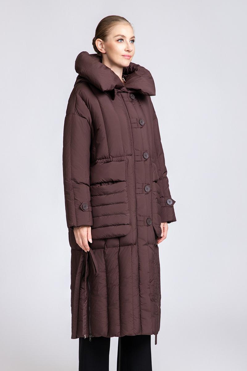 This long puffer coat is filled with 90% premium duck down, offering lightweight and long-lasting warmth. It features a slim waist design with a detachable belt to create a tailored silhouette. Available in sizes from M to 3XL, with a down filling weight ranging from 282g to 309g, it ensures a comfortable and stylish fit for all-day wear.