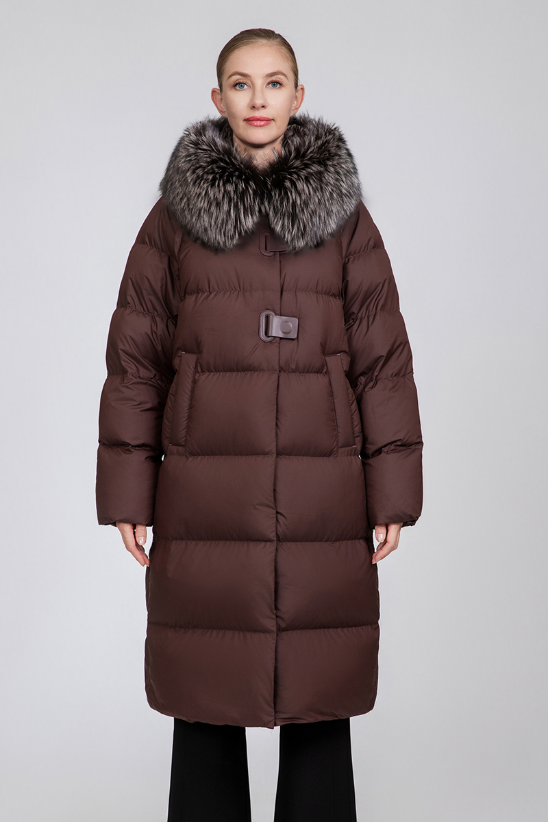 This long straight down coat is filled with 90% premium duck down, delivering lightweight and long-lasting warmth for cold winter days. It features a distinctive design with a removable fur collar, allowing you to switch between a luxe fur look and a sleek collarless style. Available in sizes from S to XL, with a down filling weight ranging from 217g to 242g, it ensures a tailored fit and consistent warmth for all-day comfort.