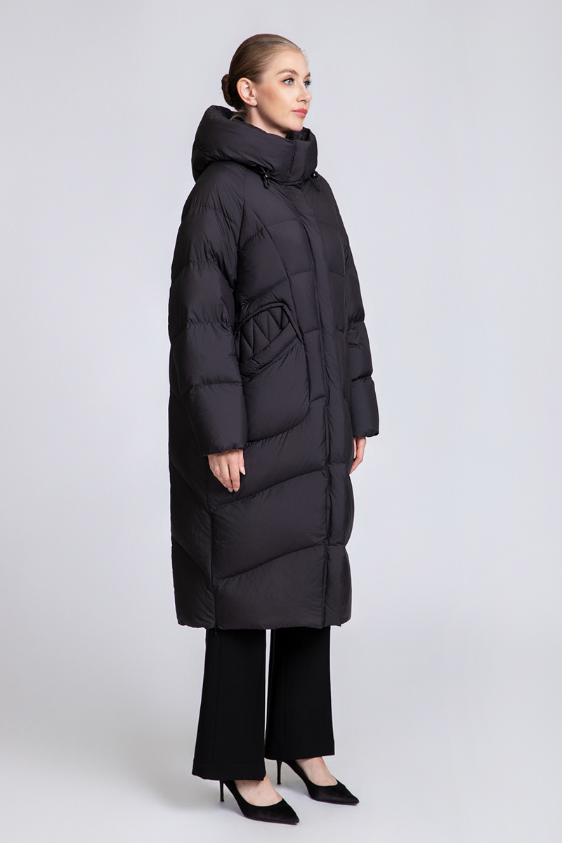 Women's premium long thickened hooded down jacket filled with 90% duck down (279-295g fill). Age-friendly, minimalist elegant fit, available in 3 color options.