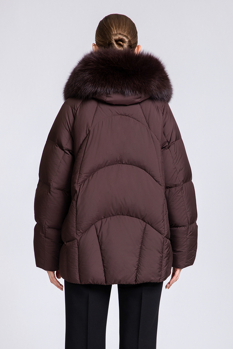 This short down coat is filled with 90% premium duck down, offering lightweight and long-lasting warmth. It features raglan sleeves for a comfortable fit and a detachable fox fur collar to switch between luxe and minimalist looks. Available in sizes from S to 2XL, with a down filling weight ranging from 169g to 193g, it ensures a tailored and cozy fit for all-day wear