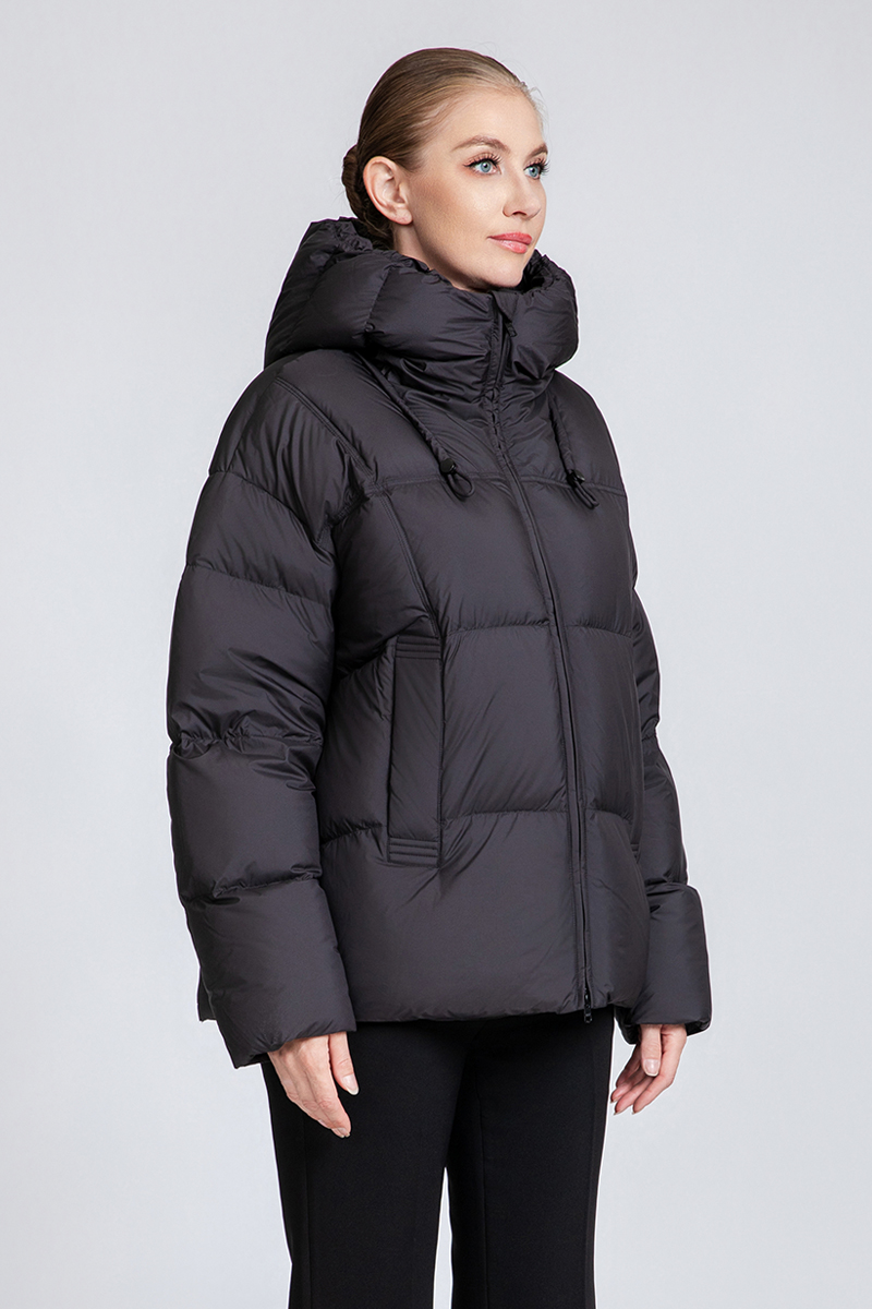 Women's short hooded down jacket filled with 90% premium duck down (176-198g fill). Comfort fit, age-friendly, and available in sizes S to 2XL for all body types.